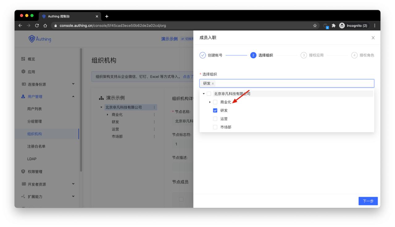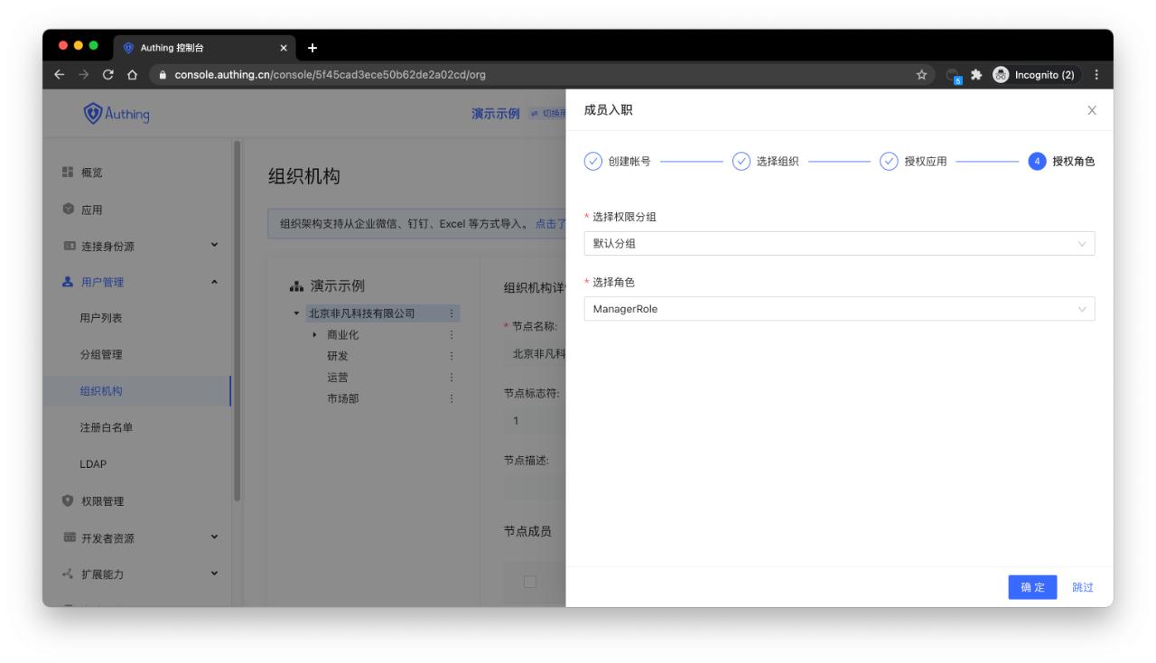 步骤三:控制台设置账户权限,自动化管理成员生命周期