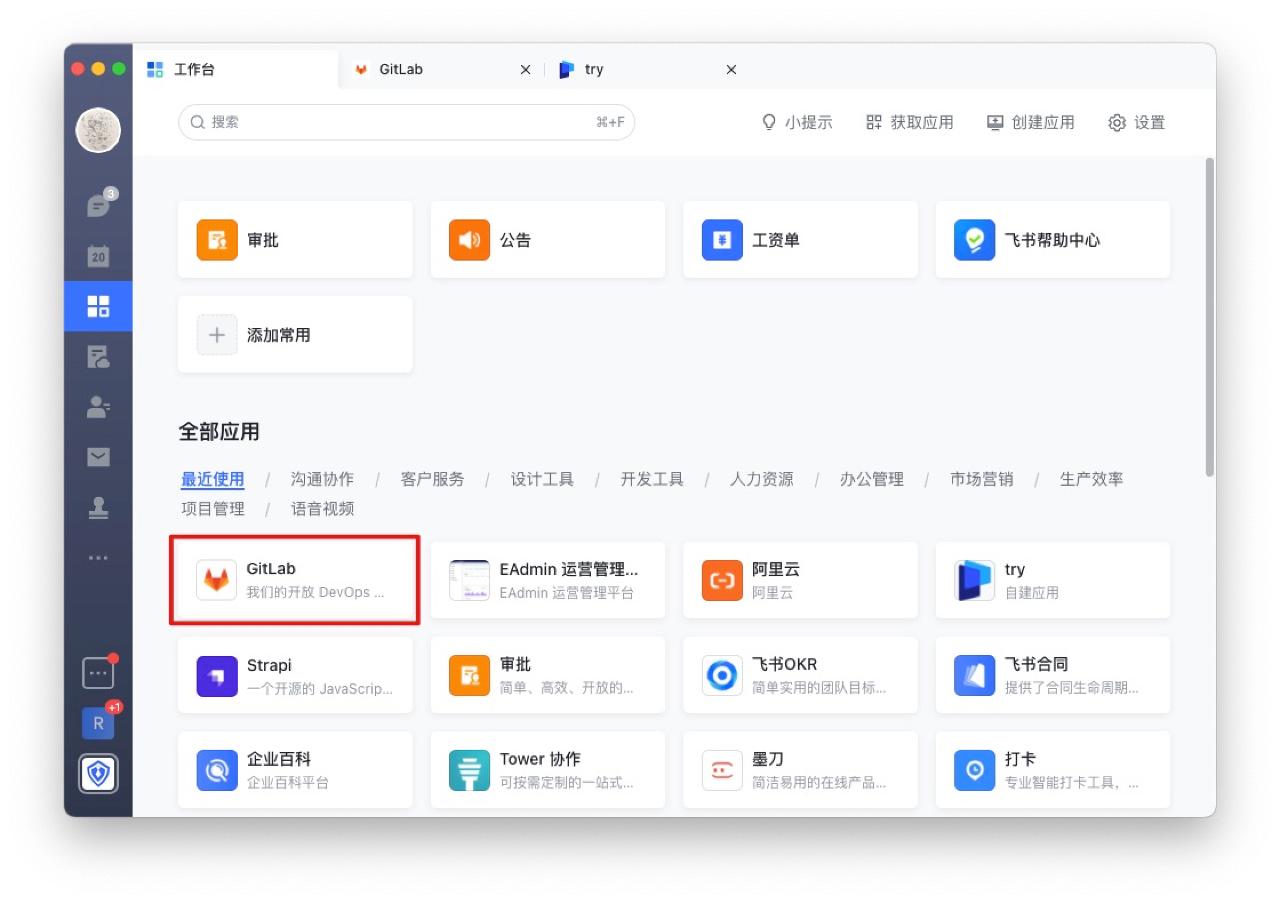 步骤二:以 GitLab 为例,使用飞书账号单点登录 GitLab